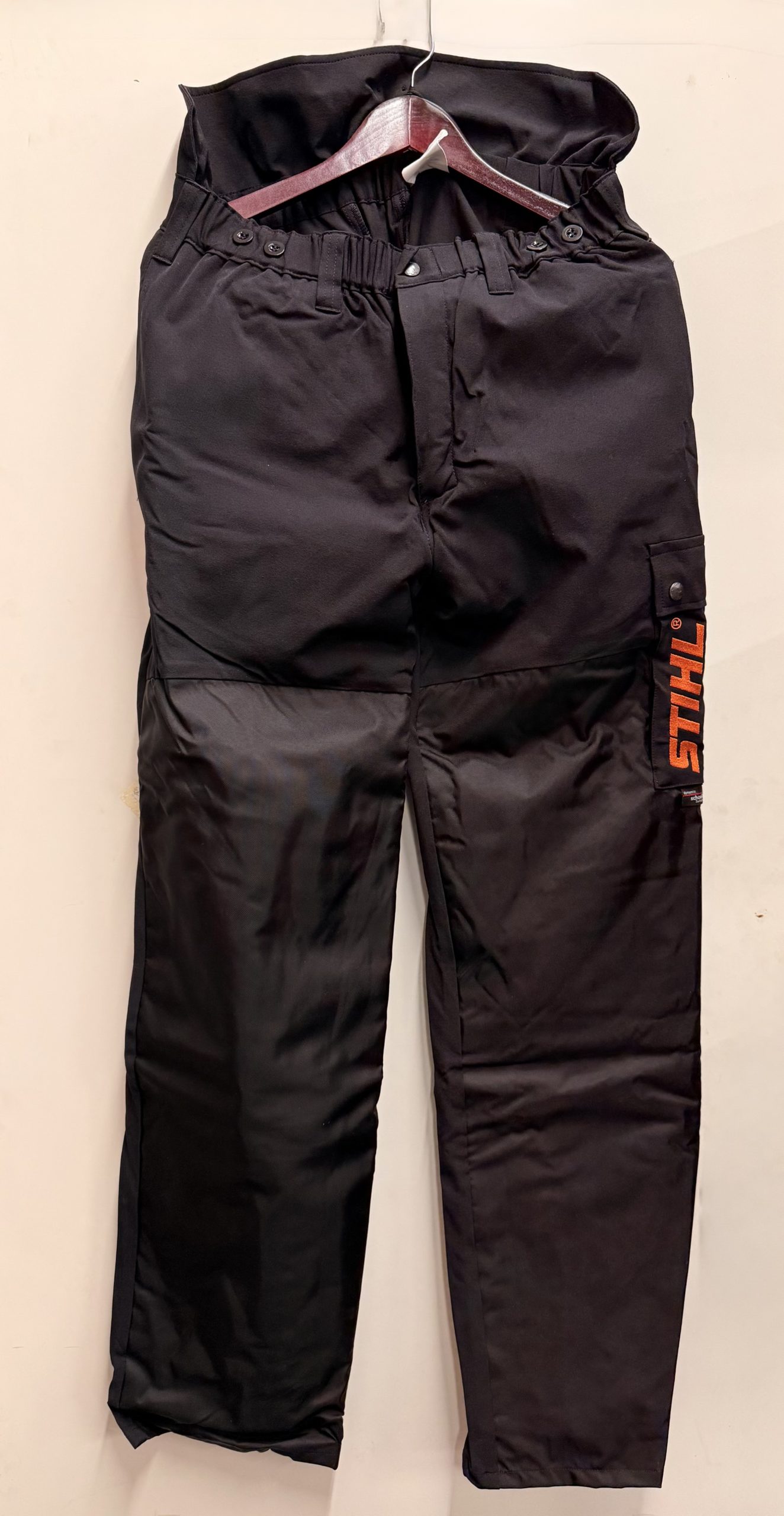 Stihl Advance viiltosuojahousuissa on tilava reisitasku, 2 työkalutaskua takana, joista toisessa nahkatuki sisällä sekä yksi vetoketjutasku.