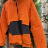 Yhdessä takissa rinnassa painatus. Muissa ommeltu erillinen painatus mustalla kankaalla.