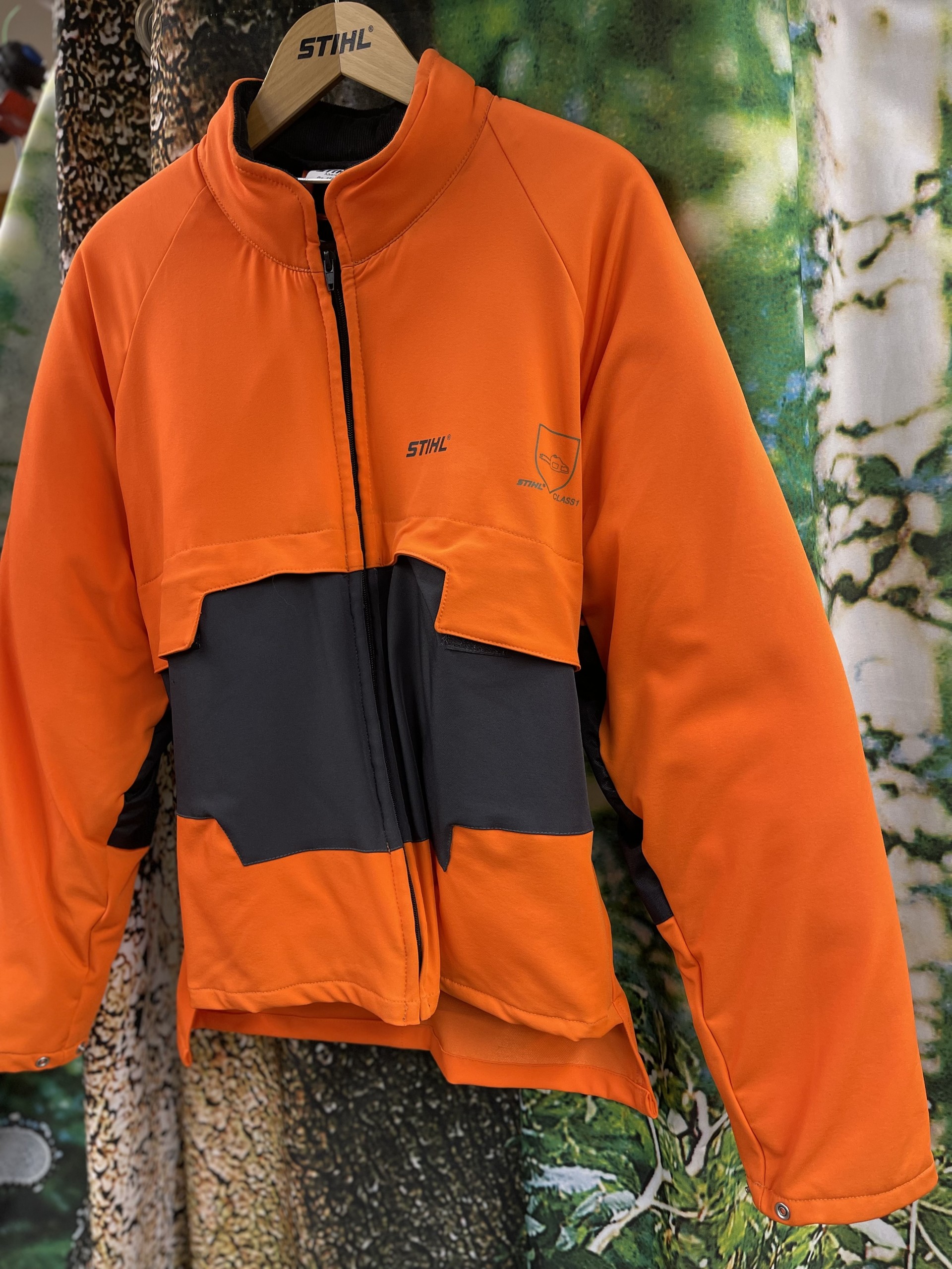 Stihl Advance takin kangas on vettä hylkivä ja joustava. Edessä rintataskut, kyynärpäät ovat vahvistettu ja raglanhiha mahdollistaa istuvuuden leveämmällekin hartialle. Takki on kevyesti topattu, joten se on lämmin kevättalven ja syksyn metsä- ja puutarhatöissä.