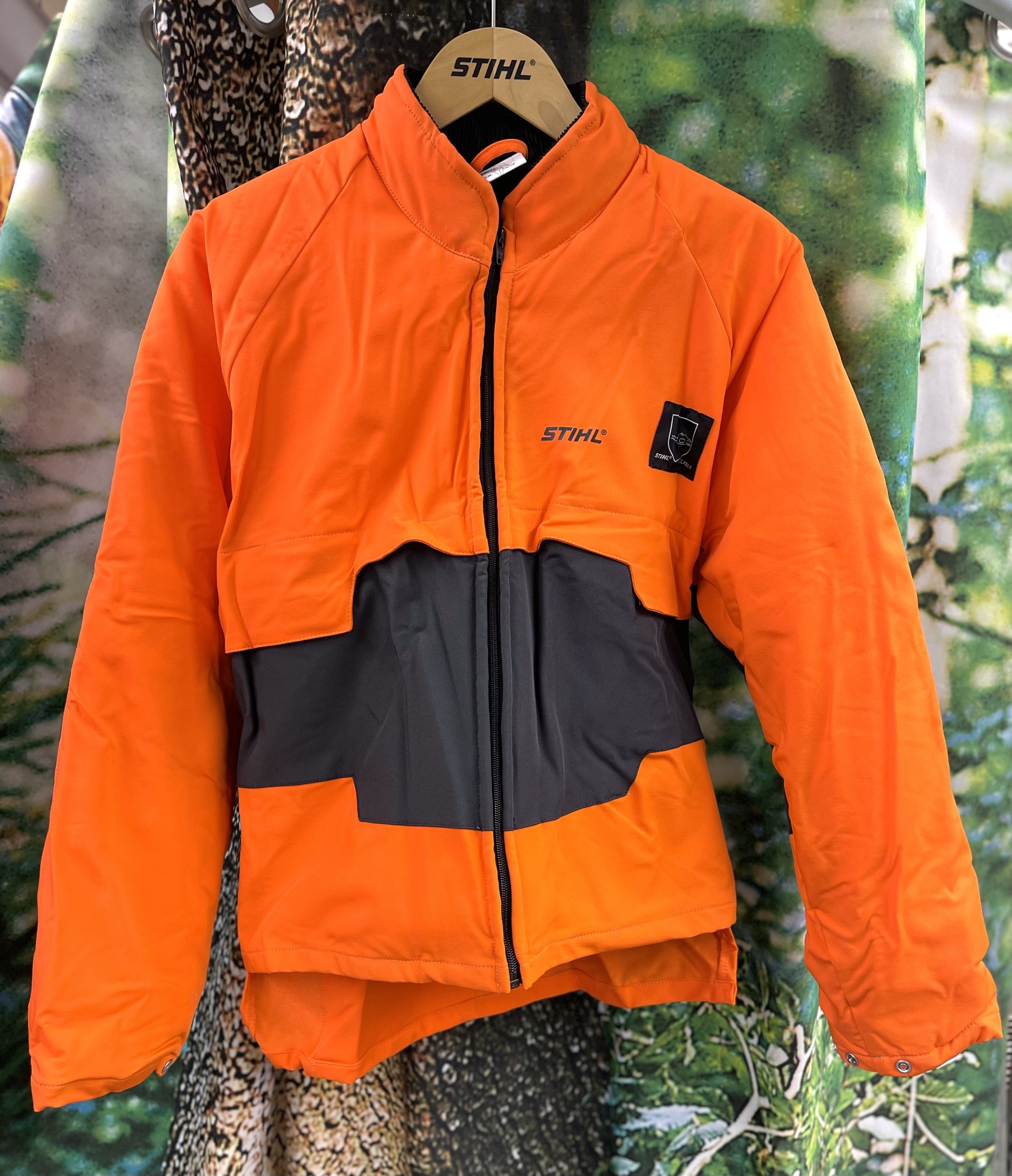 Stihl Advance takin kangas on vettä hylkivä ja joustava. Edessä rintataskut, kyynärpäät ovat vahvistettu ja raglanhiha mahdollistaa istuvuuden leveämmällekin hartialle. Takki on kevyesti topattu, joten se on lämmin kevättalven ja syksyn metsä- ja puutarhatöissä.