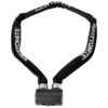 Tämä lukko kulkee kätevästi pyörän runkoon kiinnitettynä. Lukko ei vahingoita lukittavaa pyörää tai muita lukittavia esineitä, etenkään metallia, sillä lukko on pujotettu kudottuun “sukkaan”. Tällä lukolla voit lukita muun muassa portit (katso kuva).