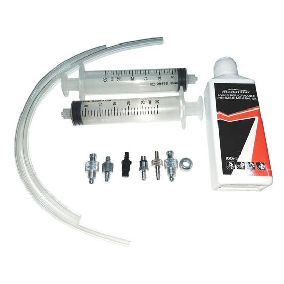 Sisältää jarrunesteen, liittimet 3kpl, ruisku 2kpl ja letku 2kpl.