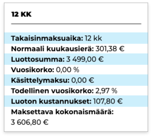 - Valitset milloin ja miten haluat maksaa. Saat jopa 12 kuukautta korotonta maksuaikaa.